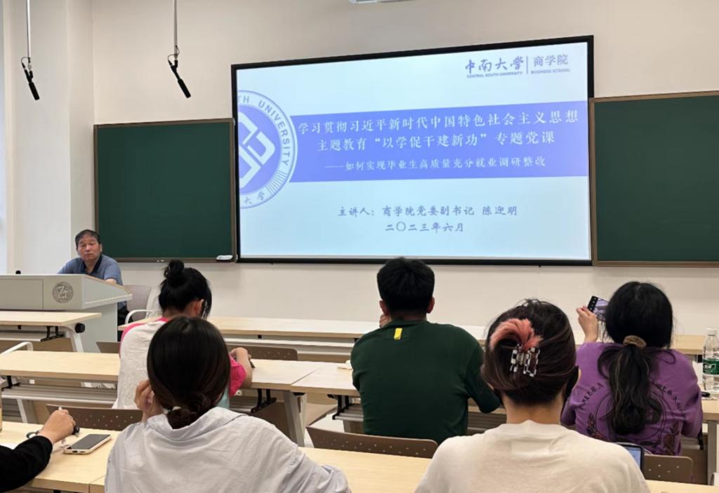 6月21日,院党委副书记陈迎明为本科生会计学党支部讲授学习贯彻习近平新时代中国特色社会主义思想主题教育“以学促干建新功”专题党课。