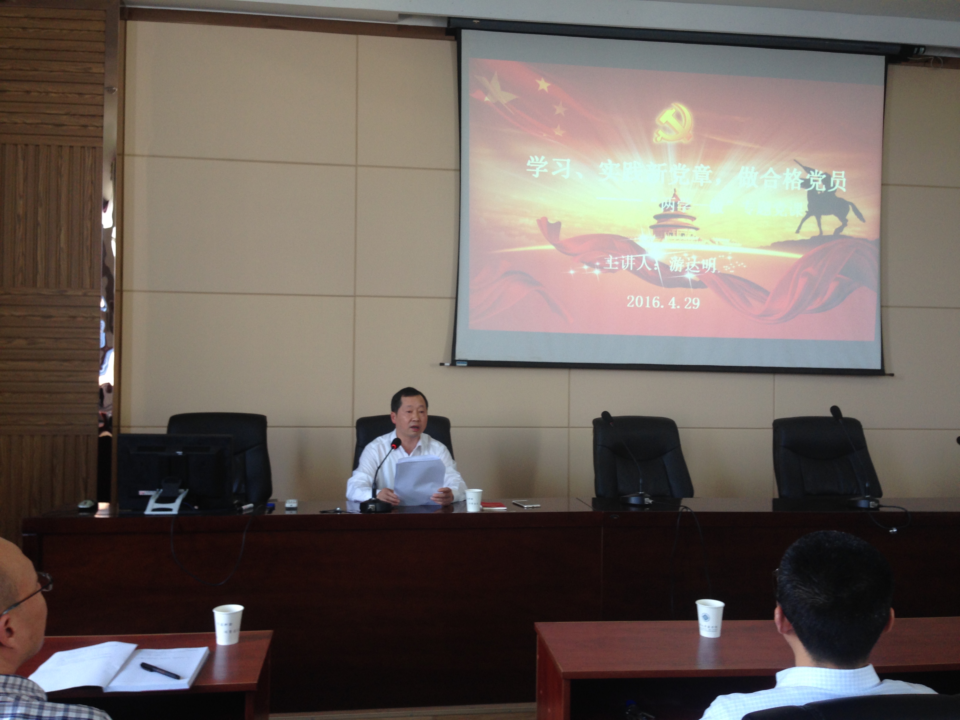 接下来游书记为全体教职工党员讲授党课—“学习、实践新党章,做合格党员”。游书记首先强调了党章的重要地位,它是党的根本大法,也是治党立党管党的重要依据。接着游书记根据章节内容为大家介绍了党的性质和基础阶级、党的指导思想、我国社会主义建设的根本任务、五位一体的中国特色社会主义事业的总体布局、民主集中制、党的干部以及党的纪律、系列讲话等相关内容。重点强调了党的干部要德才兼备、以德为先,必须严格遵守党的纪律且不容触犯。本次党课既简单明晰且重点突出地为大家介绍、剖析了党章党规、系列讲话的丰富内涵,又对照中央提出的“五个着力解决”,结合本院的实际情况找出了突出问题,剖析了问题根源,使全体党员备受警醒。