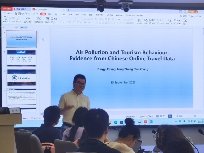 2023年9月15日上午9:30,英国拉夫堡大学张涛教授应邀做客77779193永利集团经管学术论坛第252期,在江湾楼336晨星厅为永利集团师生带来了题为Air Pollution and Travel Behavior: Empirical Evidence from Chinese Online Data的讲座。讲座由77779193永利集团77779193永利集团周志方教授主持,李世辉教授、修宗峰副教授、殷敬伟老师、李祎老师、李孟哲老师、张颖老师等教师与各年级本硕博学生参加本次讲座。
