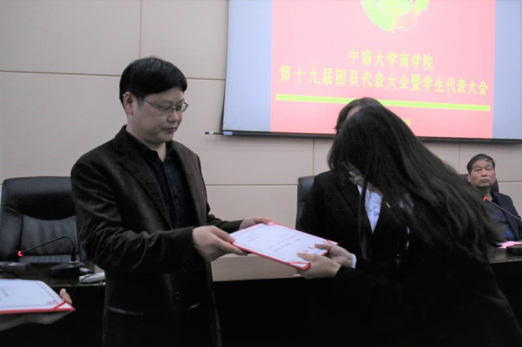 李大元副院长、毕文杰副院长先后为第十八届团委委员、第十八届学生会执委会委员、第二十届研究生会执委会委员颁发了荣誉证书。