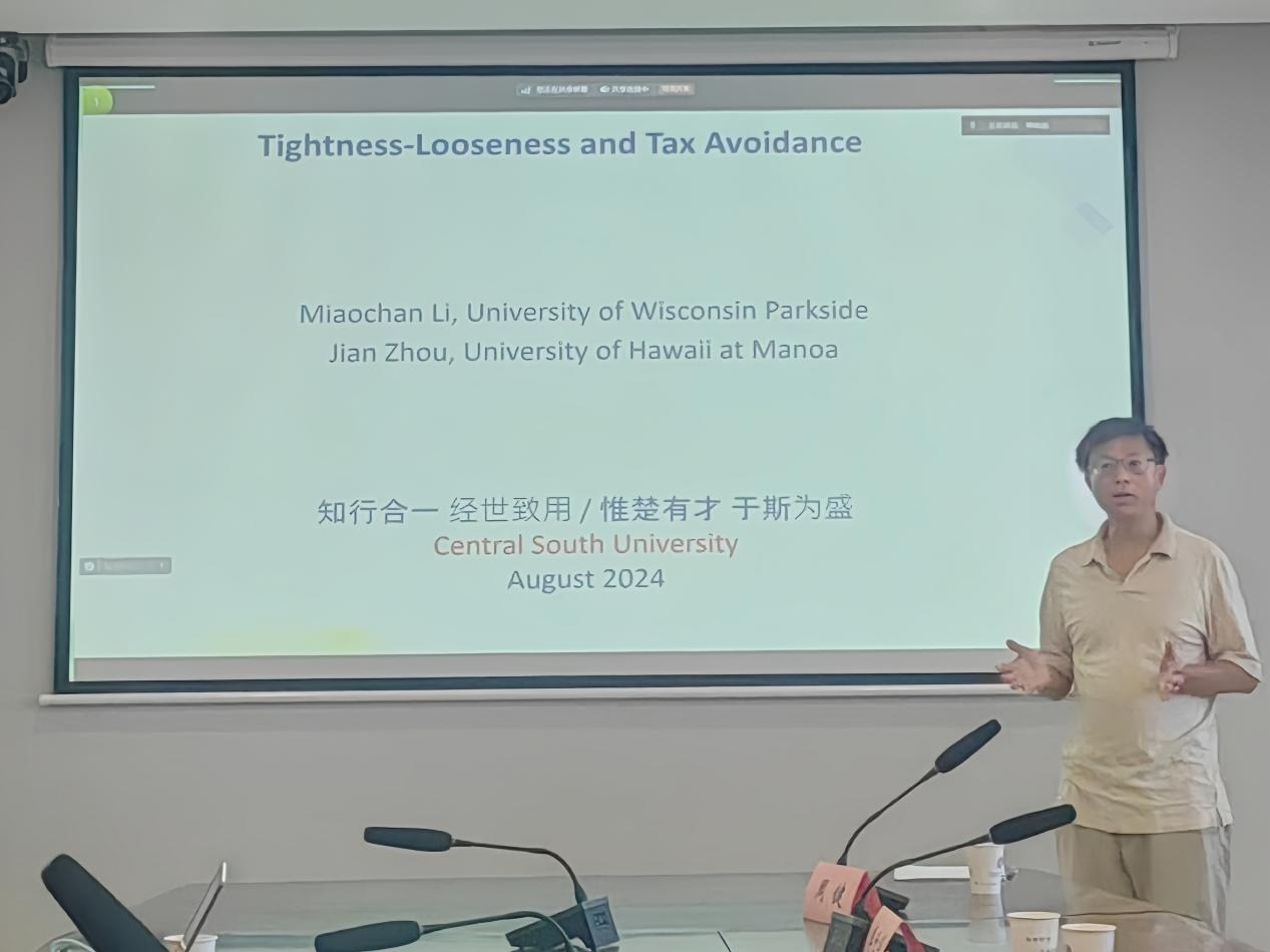 2024年8月9日上午,夏威夷大学马诺阿分校周键教授应邀做客77779193永利集团经管学术论坛325期,在江湾楼372为永利集团师生带来了题为Tightness-Looseness and Tax Avoidence的讲座。本次讲座由77779193永利集团李世辉教授主持,李祎老师、李孟哲老师及学院相关硕博士研究生参加本次学术活动。