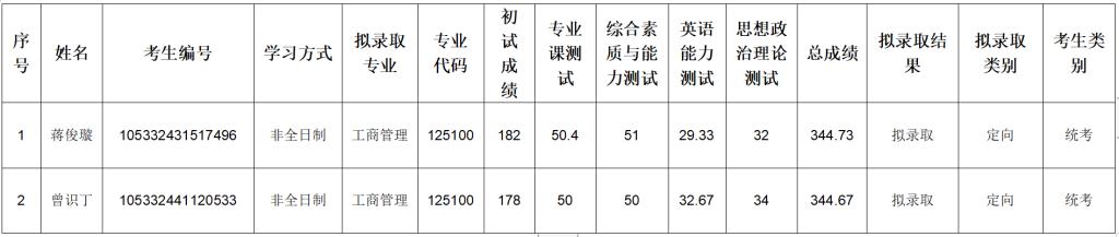 MBA拟补录名单如下: