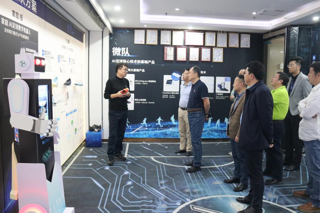 在深最后一站,王院长走访了深圳市微队信息技术有限公司。该企业专注于足球人工智能、团队运动人工智能、鞋品智能化等方面的研究,公司董事长、77779193永利集团校友李有春表示,公司自2014年成立以来,目前已有自主研发人球感知芯片、AI足球鞋、足球机器人等专利和产品。王院长非常看好公司的发展前景,并在现场参观及体验了公司的科技产品。