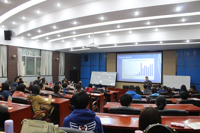 张教授从发达市场资产管理行业讲起,用生动的图形详细介绍美国共同基金市场规模和收益状况,使同学们初步了解了发达国家的资本市场情况;接着,他又讲述我国资产管理行业近年来快速发展历程,介绍国内公募基金和私募基金知名公司,并通过对资本市场的动量策略、价值策略、配对交易和事件驱动四项概念及这四项指标在学术界的理论验证和A股市场上的实证验证,让同学们切身感受到了他对学术研究的严谨态度。张教授从自身经验出发,语重心长地勉励同学们投身于真正的金融研究,积累知识,精益求精,培养严谨的学习、科研态度。