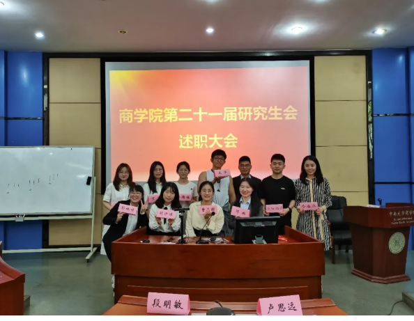 随后,与会各部长按:办公室戚尹姝、活动部陆笑笑、创新创业部曹梦园、心理部彭姝婷、学术部欧阳润泽、权益生活部丁漫、文体部王泽、宣传部胡伊诺的顺序进行述职。各部门部长分别从各自部门的角度,将近一年来部门分管的工作、参与的活动、工作的成果进行梳理展示,总结工作经验、找出工作不足,并提出未来工作规划。展示了包括研会成员的学习绩点、政治面貌在内的各项情况以及部门所取得的成绩;总结了研会工作成功推进的经验,也提到了在工作中可能存在的办事效率不高、创新力度不强等问题。